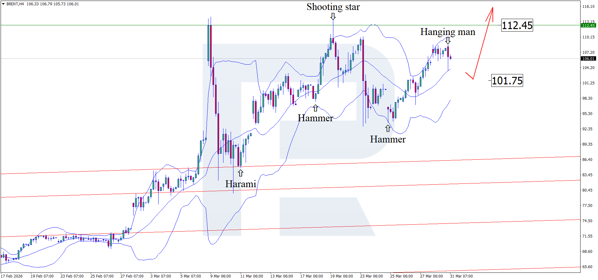 2026-yil 31-mart uchun Brent narxi prognozi birinchi yuqoriga maqsad sifatida 112.45 USD darajasini nazarda tutadi. Agar qarshilik yorib o‘tilsa, bozor kuchliroq o‘sish to‘lqiniga yo‘l ochadi va keyingi qarshilik darajasi — 115.00 USD sinovdan o‘tilishi mumkin.