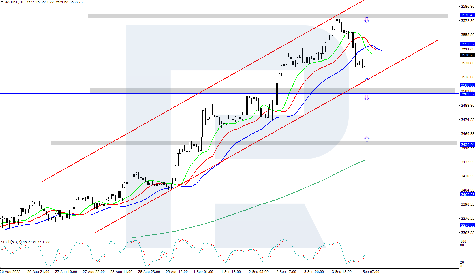 XAUUSD narxlari kuchli rally va 3,578 USD yangi tarixiy cho‘qqisidan so‘ng mo‘‘tadil pasaymoqda. Bugun bozor e’tibori AQSh ADP bandlik ma’lumotlariga qaratilgan. 2025 yil 4 sentabr uchun tahlilimizda ko‘proq bilib oling.