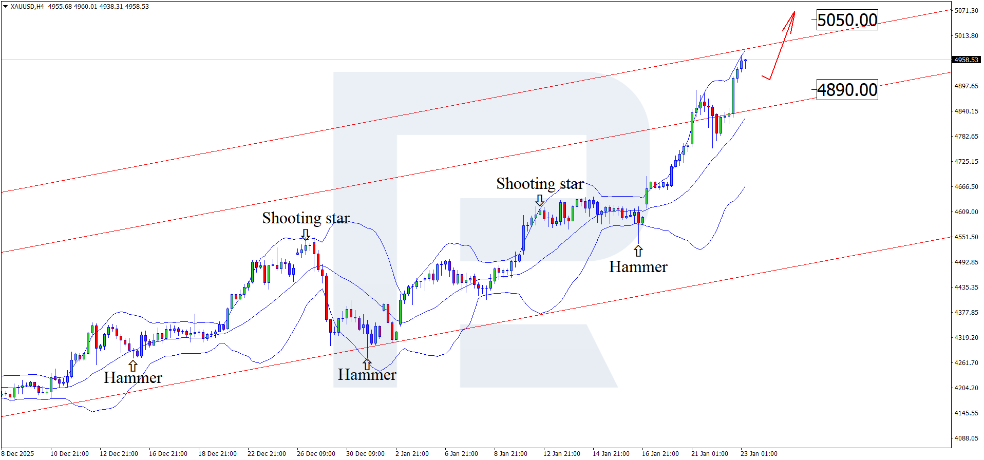 XAUUSD kotirovkalari yana bir narx rekordini o‘rnatib, 4,957 USD darajasini sinovdan o‘tkazdi. AQSh iqtisodiy ko‘rsatkichlarining zaifligi fonida 5,000 USD belgidan yuqoriga o‘sish ehtimoli saqlanib qolmoqda. Batafsil ma’lumotlar — 2026 yil 23 yanvar uchun tahlilimizda.