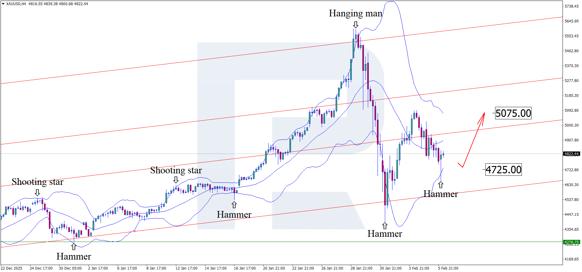 AQSh statistik ma’lumotlari e’lon qilinishi arafasida Gold (XAUUSD) yana bir o‘suvchi to‘lqinni shakllantirmoqda. Kotirovkalar unsiya uchun 4,870 USD darajasini sinovdan o‘tkazmoqda. Batafsil ma’lumotlarni 2026 yil 6 fevral uchun tahlilimizda toping.