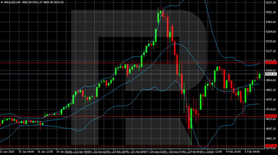Fevral boshida oltin 4,400–4,500 hududida mahalliy minimum hosil qilib, tiklanish bosqichiga o‘tdi. Ushbu qaytish tuzatuvchi xarakterga ega: narxlar avval qo‘llab-quvvatlash bo‘lib xizmat qilgan va hozir qarshilik shakllanayotgan 4,950–5,050 zonasiga qaytdi. Kotirovkalar Bollinger Bands o‘rta chizig‘i atrofida savdolashmoqda, diapazonlar asta-sekin torayib, kuchli harakatlardan so‘ng barqarorlashuvni ko‘rsatmoqda.