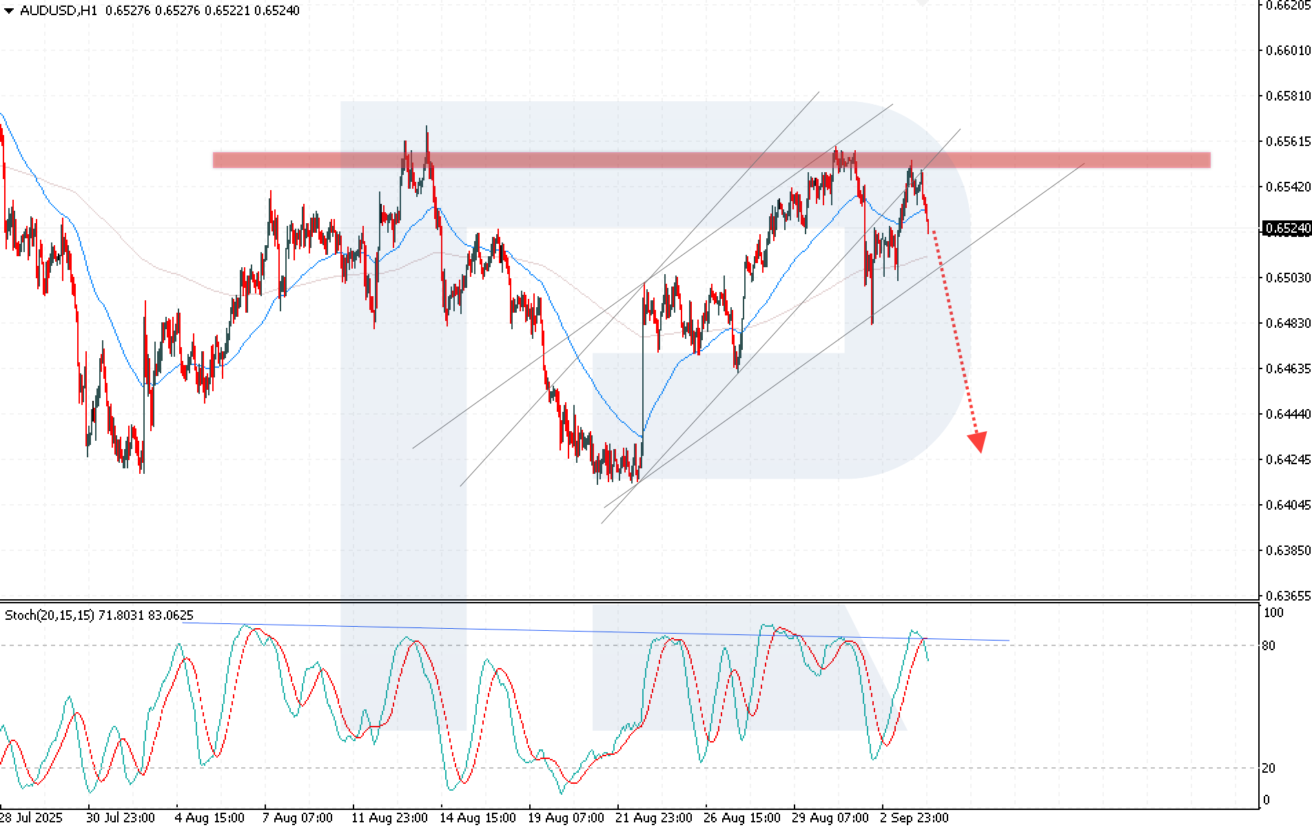 AUDUSD kursi 0.6550 qarshilik darajasidan yuqorida mustahkamlana olmaganidan keyin pasaymoqda. Avstraliya iqtisodiyoti 2-chorakda 0.6% ga o‘sib, prognoz qilingan 0.5% dan yuqori chiqdi va so‘nggi deyarli ikki yildagi eng tez yillik o‘sishni qayd etdi, bunga uy xo‘jaliklari iste’molining kuchli bo‘lishi sabab bo‘ldi.