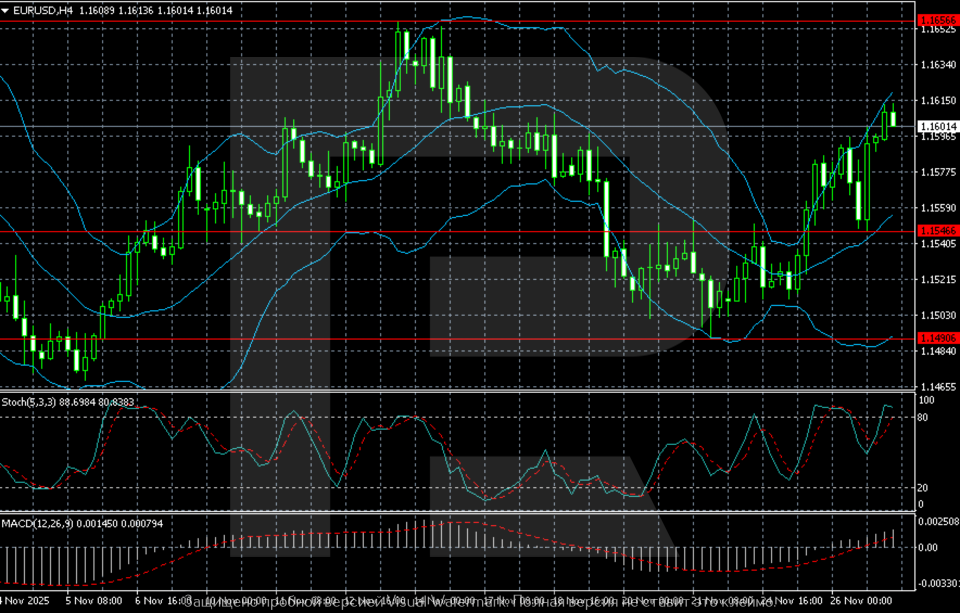EURUSD tuzilmasi xaridorlar foydasiga o‘zgardi, ammo muhim nyuanslar bor. Bugun, 27 noyabr 2025 yil uchun EURUSD prognozi 1.1655 dan yuqoriga chiqishga urinilishdan oldin qisqa muddatli orqaga chekinish xavfini ko‘rsatmoqda.