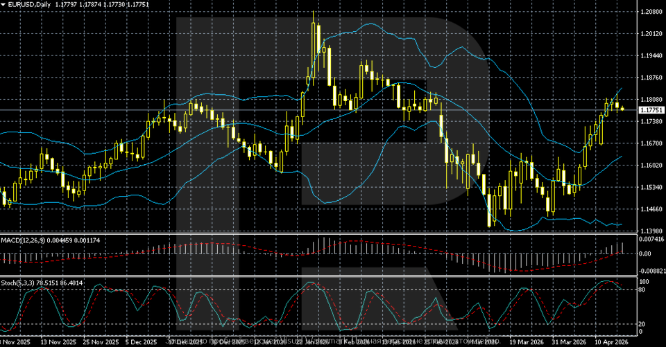 EURUSD juftligi 20–24 aprel haftasini 1.1775 atrofida boshlamoqda, bu AQSh dollarining zaiflashuvi va geosiyosiy keskinlikning yumshashi kutilmalari bilan bog‘liq. Bozor AQSh–Eron muzokaralari istiqbollari, neft narxlari va aralash makroiqtisodiy ma’lumotlar fonida Federal Reserve signalini baholamoqda.