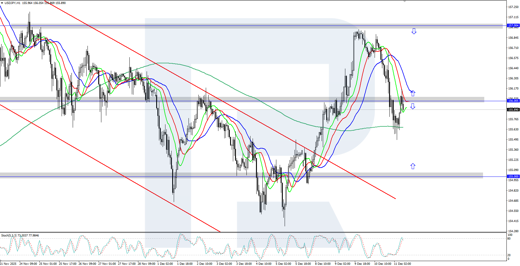 USDJPY pasayishda davom etmoqda, Fedning stavka pasaytirish qaroridan so‘ng 156.00 darajasidan pastga sirg‘alib tushdi. Batafsil — 2025 yil 11 dekabr uchun tahlilimizda.