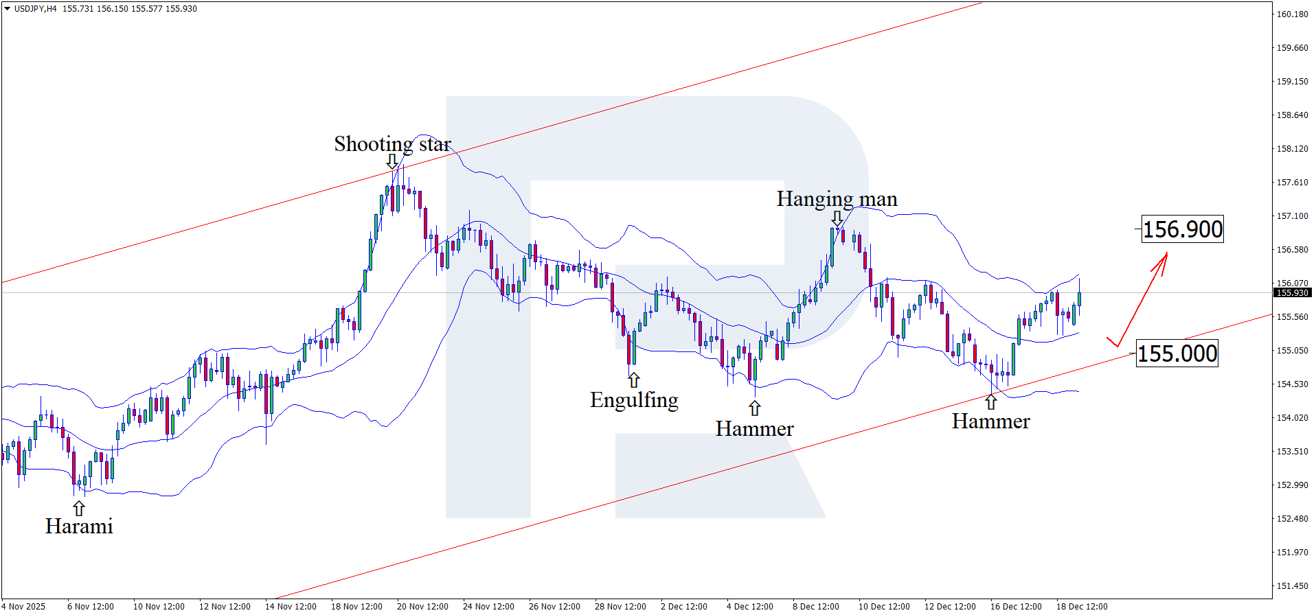 19 dekabr 2025 uchun JPY istiqboli unchalik ijobiy ko‘rinmayapti. USDJPY juftligi yuqoriga yo‘nalgan to‘lqinni shakllantirmoqda va 156.00 darajasi atrofida savdolanmoqda.