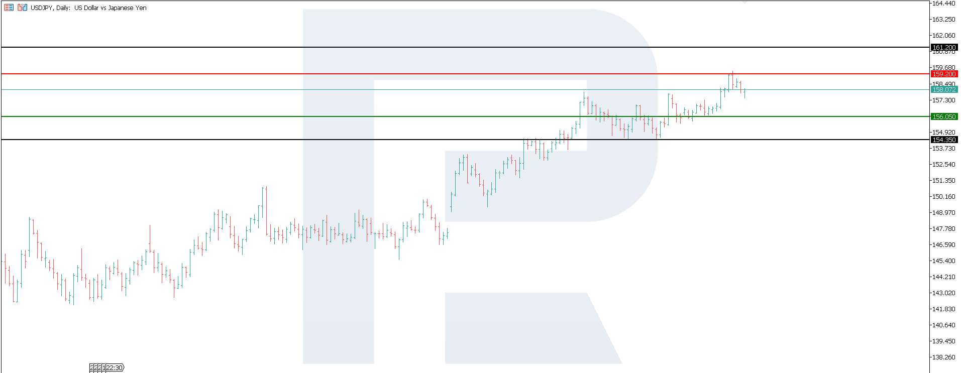 Muqobil ssenariyga ko‘ra, USDJPY kotirovkalari yana o‘sishni tiklab, joriy qarshilik darajasidan yuqoriga yorib o‘tishi va 161.20 darajasi tomon harakat qilishi mumkin. Biroq hozircha, Yaponiya Bankining davom etayotgan og‘zaki intervensiyalari fonida ushbu ssenariy eng past ehtimollikka ega.