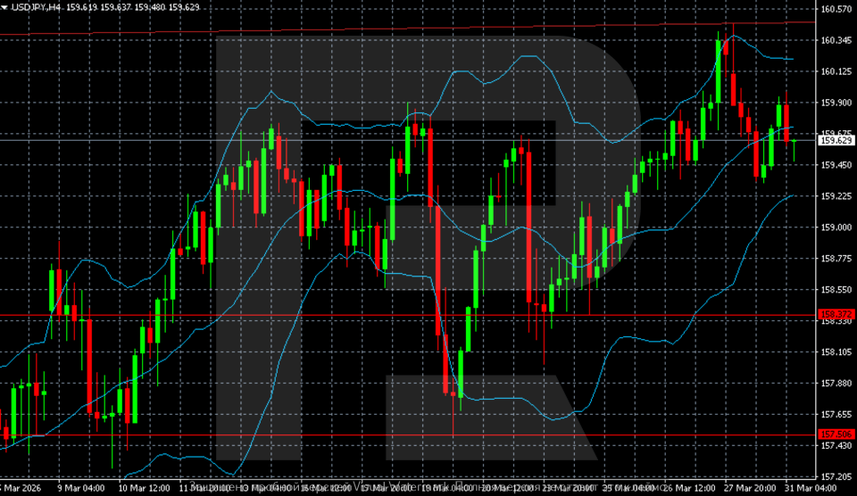 USDJPY juftligi o‘sishni to‘xtatib, chekinib keldi. 2026-yil 31-mart uchun USDJPY prognozi 159.45–160.00 diapazonida konsolidatsiya davom etishini istisno qilmaydi.