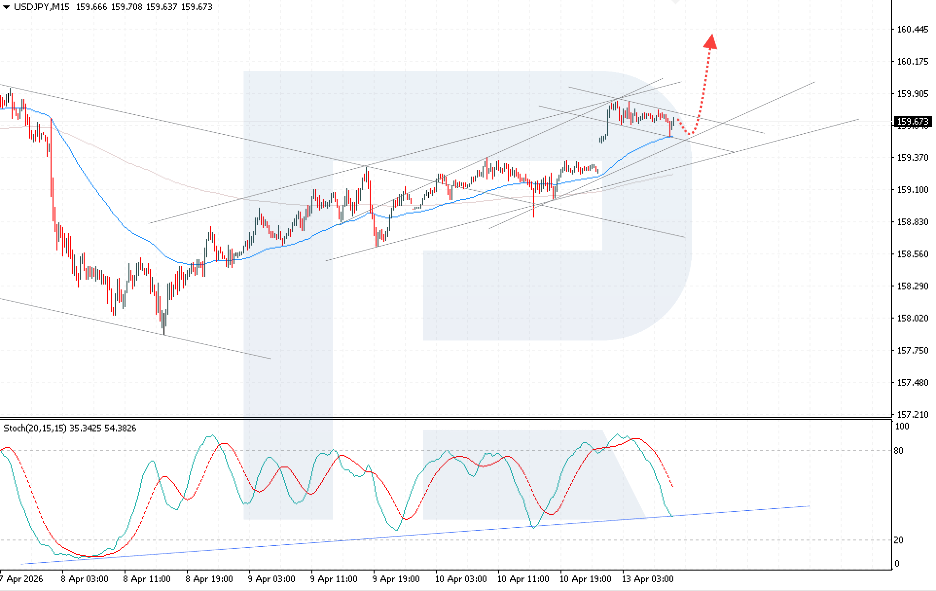 Umuman olganda, texnik manzara buqalar foydasiga. Stochastic Oscillator o‘suvchi tayanch chizig‘idan qaytmoqda — bu trendning davom etish ehtimolini bildiradi. Qo‘shimcha omil sifatida indikatorning haddan tashqari sotib olingan zonadan chiqishi qayd etiladi: bu tuzatish bosqichi yakunlanayotganini va o‘sish impulsi tiklanayotganini anglatishi mumkin. 159.75 dan yuqorida barqaror harakat tuzatish kanali chegarasidan yuqoriga yorilishni tasdiqlaydi va o‘sish davom etishi signalini kuchaytiradi.