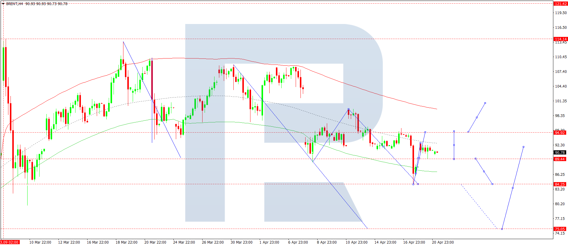 Brent neftining H4 grafikida bozor 89.50 gacha pasayish strukturasini yakunladi. Bugun, 21 aprel 2026, 94.94 gacha o‘sish ehtimoli mavjud va ushbu darajadan pastda konsolidatsiya shakllanishi mumkin. Agar yuqoriga yorib o‘tilsa, 101.50 va 110.00 gacha o‘sish ehtimoli mavjud. Aks holda, pastga yorib o‘tilsa, 75.00 gacha tuzatish bo‘lishi mumkin, undan keyin yana 110.00 tomon o‘sish kutiladi.
