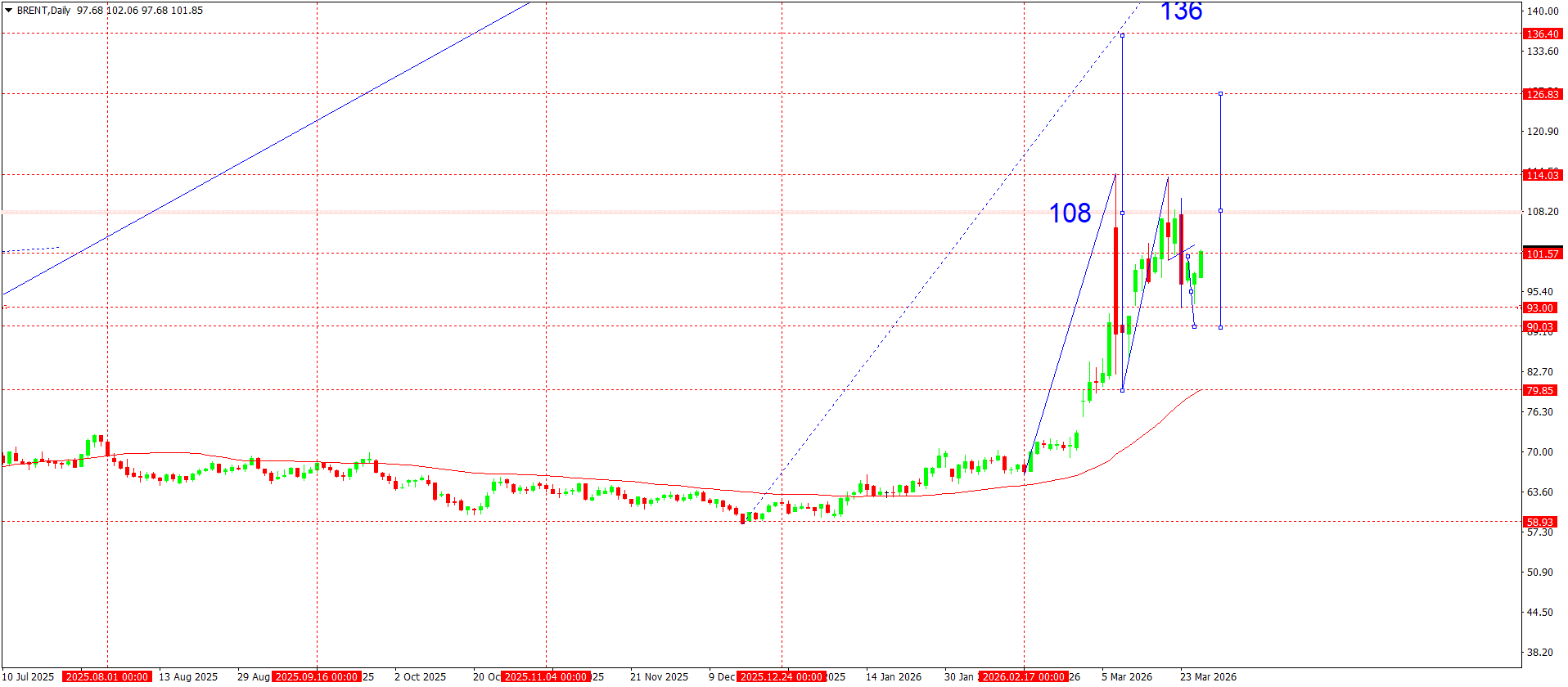 Kundalik grafikda Brent uzoq muddatli konsolidatsiya (58.93–70.00) yakunlangandan keyin shakllangan aniq o‘suvchi tuzilmani saqlab qolmoqda. 79.85 hududidagi muhim qarshilikdan yuqoriga yorib o‘tish tezlashgan impulsiv rallining boshlanish nuqtasi bo‘ldi, keyinchalik u kengaygan o‘sish to‘lqiniga aylandi.
