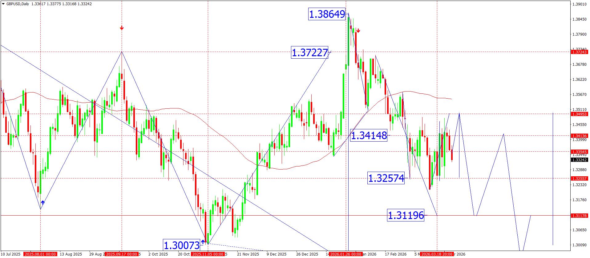 Texnik nuqtai nazardan, kundalik GBPUSD grafikida 1.3864 yaqinidagi mahalliy maksimumdan so‘ng pasayuvchi tuzilma shakllanmoqda. Keskin pasayishdan keyin narx korreksiyaga o‘tdi, biroq maksimum va minimumlar tuzilmasi pasayishda davom etmoqda, bu barqaror sotuv bosimini ko‘rsatadi.