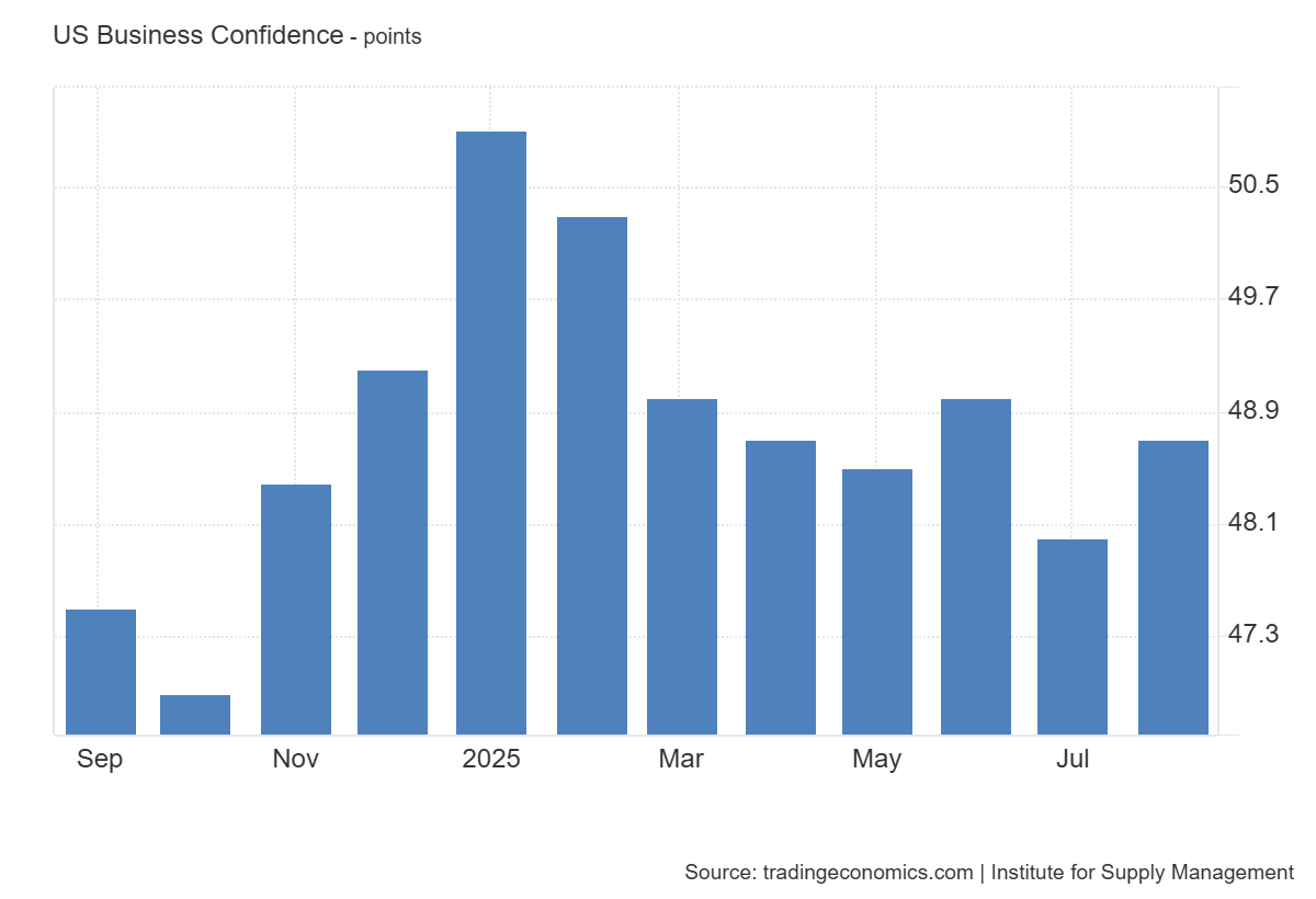 2025-yil sentyabr oyidagi ISM ishlab chiqarish PMI 48.7 punktni tashkil etdi, bu esa o‘sish bilan qisqarishni ajratib turuvchi muhim 50.0 belgidan past. Bu oldingi 48.0 dan biroz yuqori bo‘lsa-da, prognoz qilingan 49.0 dan past bo‘lib, AQSh ishlab chiqarish sektori muammolarga duch kelishda davom etayotganini va qisqarish hududida qolayotganini ko‘rsatmoqda.