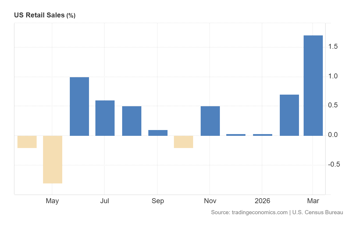 AQSh chakana savdo ko‘rsatkichlari kutilganidan yuqori chiqdi: amaldagi oylik o‘sish 1.7% ni tashkil etdi, bu 1.4% prognozdan va 0.7% avvalgi ko‘rsatkichdan yuqori. US 30 indeksi uchun bu odatda o‘rtacha ijobiy signal hisoblanadi, chunki bu iste’mol talabi barqarorligini va AQSh iqtisodiy faolligi davom etayotganini ko‘rsatadi. US 30 tarkibidagi kompaniyalar asosan iqtisodiyotning yetuk sektorlariga tegishli — sanoat, moliya, iste’mol tovarlari, sog‘liqni saqlash va AQSh ichki daromadlariga katta darajada bog‘liq yirik korporatsiyalar. Agar iste’molchilar faol xarid qilishni davom ettirsa, bu kompaniyalar daromadlari bo‘yicha kutilmalarni qo‘llab-quvvatlaydi va iqtisodiyot keskin sekinlashuvi haqidagi xavotirlarni kamaytiradi.
