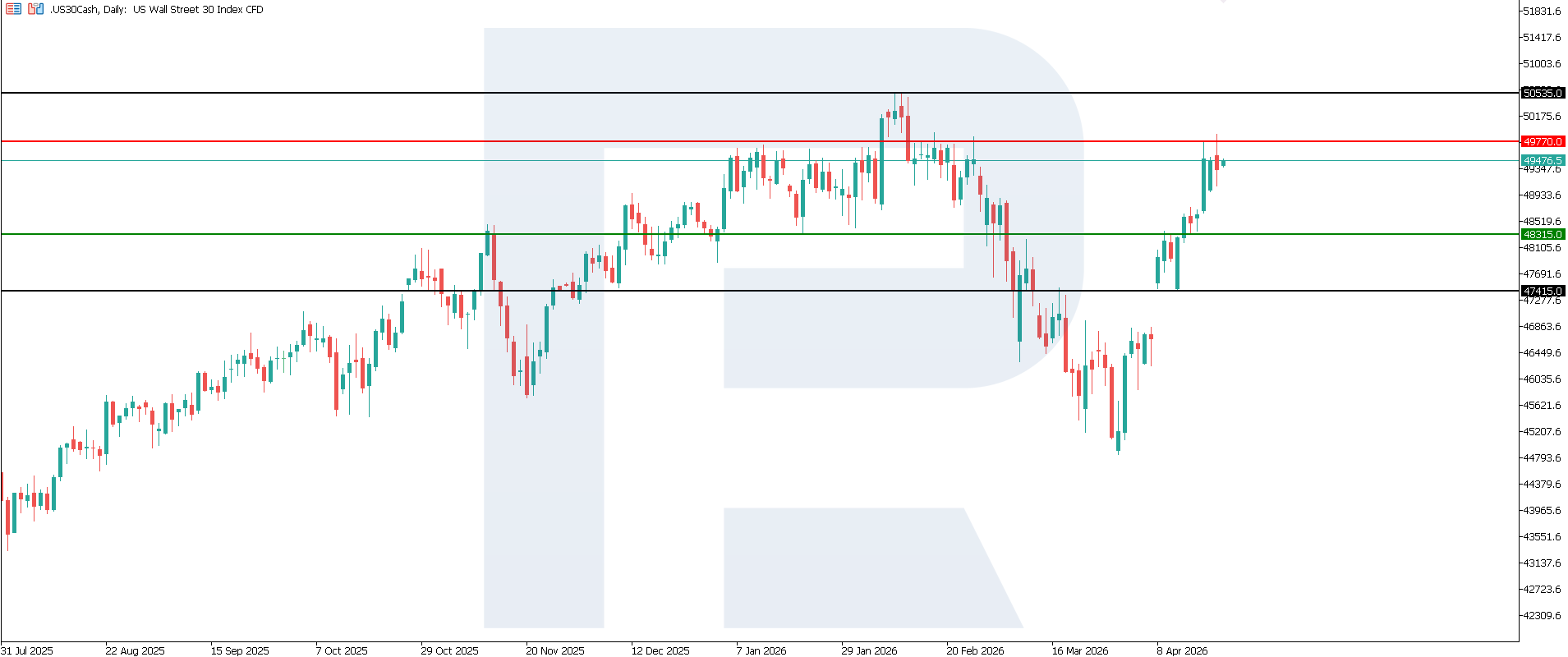 Umuman olganda, US 30 uchun ushbu ma’lumotlar o‘rtacha ijobiy signal hisoblanadi, chunki ular kuchli ichki talab va AQSh iqtisodiyotining barqarorligini tasdiqlaydi. Biroq investorlar ushbu ko‘rsatkichlarni pul-kredit siyosatini yumshatishni kechiktiruvchi omil sifatida baholasa, indeksning o‘sish potensiali cheklanishi mumkin. Eng ehtimoliy ssenariy — siklik va iste’molga bog‘liq kompaniyalarga qiziqishning oshishi, shu bilan birga himoyaviy va foiz stavkalariga sezgir sektorlar bo‘yicha ehtiyotkorlikning kuchayishi. Eng yaqin yuqoriga yo‘nalish maqsadi 50,535.0 darajasida bo‘lishi mumkin.