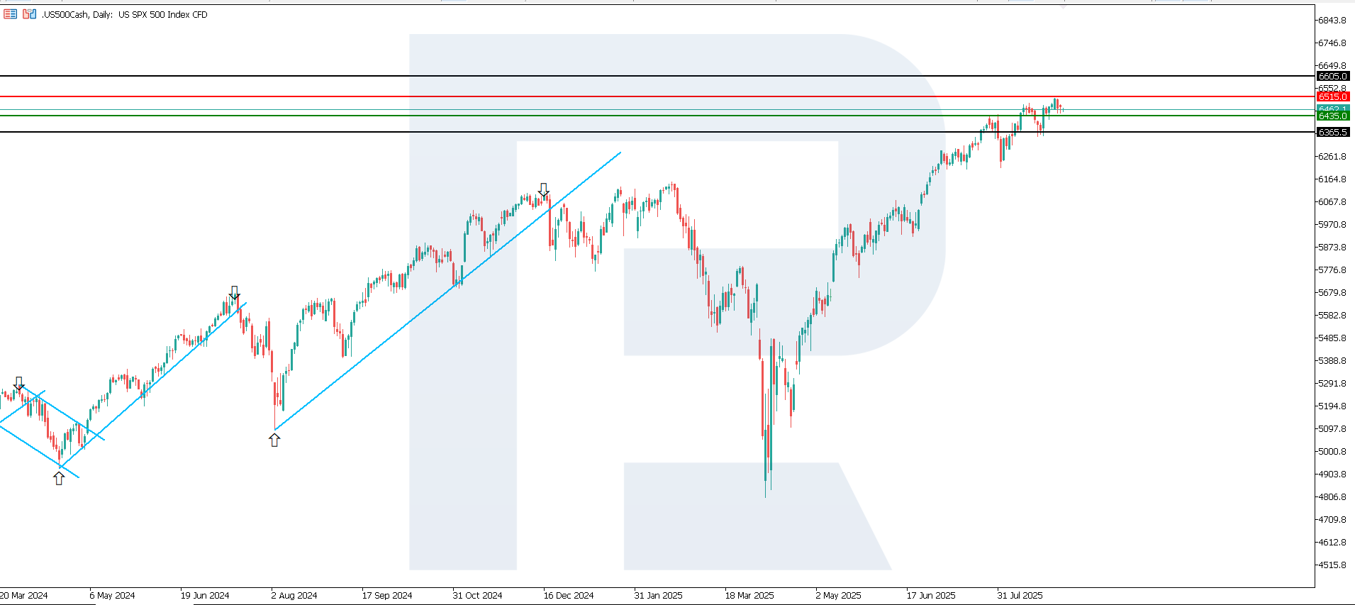 AQSh fond bozori uchun ushbu ma’lumotlar ikki tomonlama ta’sir ko‘rsatmoqda. Bir tomondan, prognozlarga mos kelishi Fed’ning kutilmagan qarorlari xavfini kamaytiradi, investorlar ishonchini qo‘llab-quvvatlaydi va bozor kayfiyatini mustahkamlaydi. Boshqa tomondan, oldingi ko‘rsatkichdan yuqoriroq bo‘lishi inflyatsion bosim davom etayotganini anglatadi, bu siyosatni yumshatish imkoniyatlarini cheklaydi va stavkalar bozorlarga yoqadiganidan uzoqroq yuqori darajada qolishi mumkinligini ko‘rsatadi. Texnik nuqtai nazardan, US 500 indeksi o‘sishini 6,605.0 tomon davom ettirishga tayyor.
