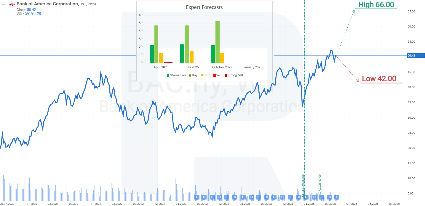 Bank of America Corporation aksiyalari bo‘yicha 2025-yil tahlil va prognozBank of America Corporation aksiyalariga sarmoya kiritish quyidagi omillarni o‘z ichiga olgan xavflarni o‘zida mujassam etadi: