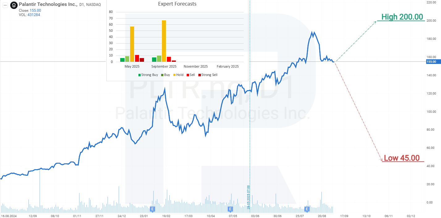 Biroq, taxminan 157 USD atrofidagi aksiyalar narxi bilan bozor bahosi nihoyatda yuqori. U allaqachon ko‘p yillar davomida uzluksiz tez o‘sishga doir kutishlarni inobatga olgan. Bu Palantir’ga hozir investitsiya qilishni juda xatarli qiladi, ayniqsa o‘sish sekinlashsa yoki tashqi chaqiriqlar yuzaga kelsa. Aksiyalarni hozir sotib olish faqat AIP platformasining uzoq muddatli muvaffaqiyatiga va AQSh hamda xalqaro bozorlarda biznesning davomiy kengayishiga ishonch bo‘lgan taqdirda oqlanishi mumkin.