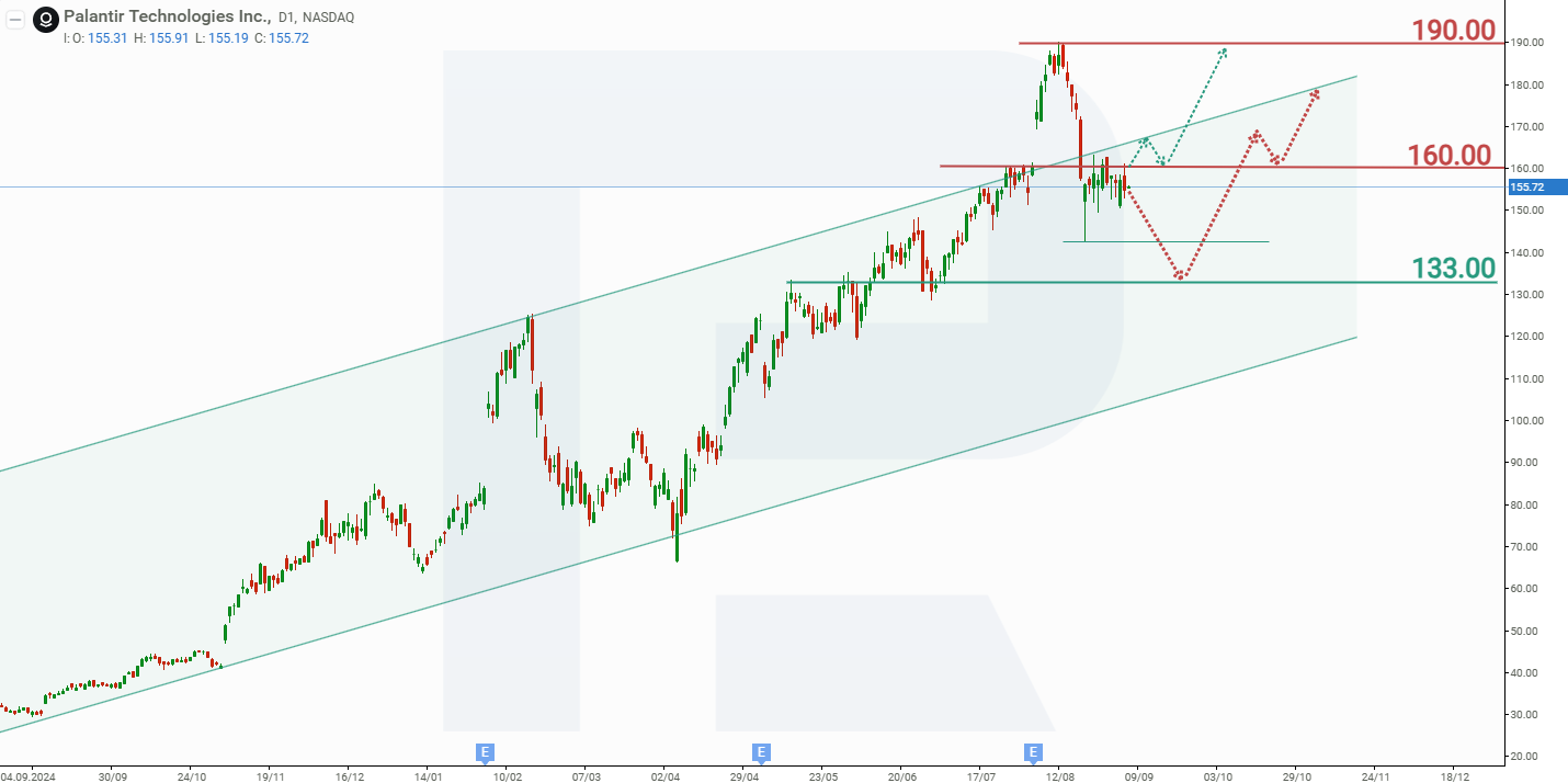Bazaviy prognoz Palantir Technologies aksiyalari uchun PLTR’ning taxminan 133 USD atrofidagi eng yaqin qo‘llab-quvvatlash darajasiga tomon yanada pasayishini kutadi. Shu darajada aksiyalarga investitsiya qilish investorlar uchun jozibaliroq ko‘rinishi mumkin, bu esa xaridlar qiziqishini rag‘batlantirishi ehtimol. Shundan keyin qo‘llab-quvvatlashdan qaytish va o‘sishning ko‘tarilish kanalining yuqori chegarasi — 180 USD tomon davom etishi kutiladi.