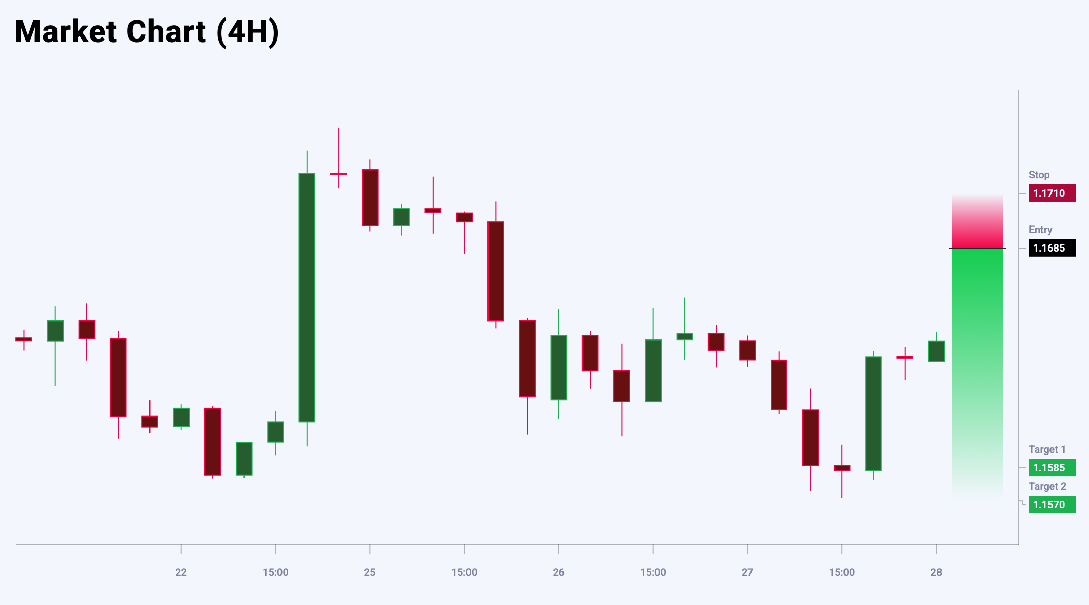 O‘rta muddatli EURUSD prognozi bearishligicha qolmoqda. Narx harakati potensial tepa shakllantirmoqda, qisqa muddatli qaytish ham mumkin. Asosiy strategiya – ko‘tarilishlarda sotish, asosiy qarshilik darajasi 1.1685 da. Bugungi EURUSD savdo g‘oyasi Sell Limit kutilayotgan buyurtmasini joylashtirishni tavsiya qiladi.