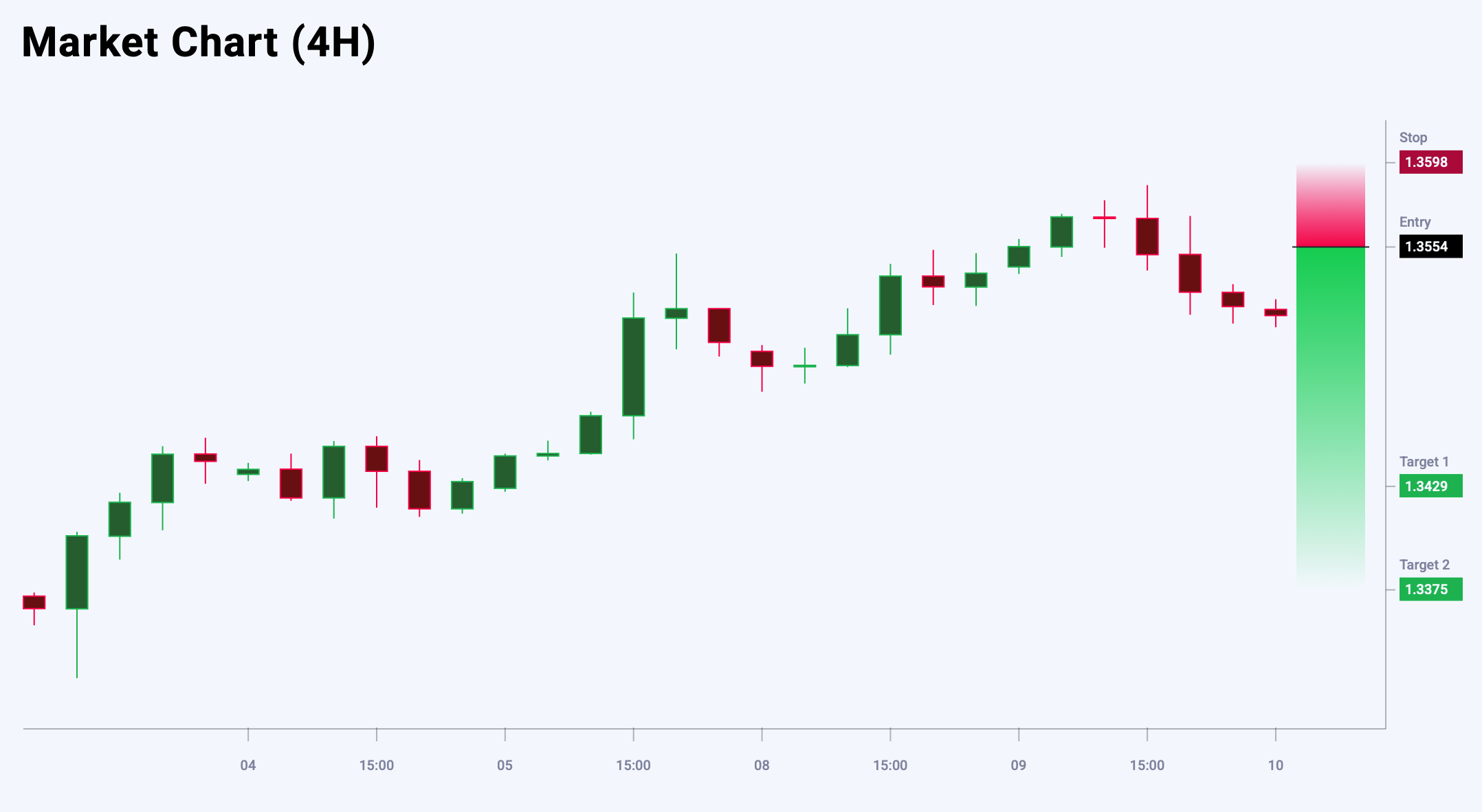GBPUSD juftligida lokal cho‘qqi shakllanayotganidan dalolat beruvchi belgilar paydo bo‘ldi: yuqorida Doji shamchasi hosil bo‘ldi, bu esa xarid bosimining susayishini ko‘rsatmoqda. Ushbu model qisqa muddatli tuzatish ehtimolini oshiradi va keyingi o‘sish uchun salbiy signal sifatida qaralmoqda. Hozirgi sharoitda optimal strategiya – o‘sishda sotish. Eng yaqin muhim resistance darajasi 1.3554 atrofida joylashgan bo‘lib, undan narx pasayishi ehtimoli katta. Bugungi GBPUSD savdo g‘oyasi Sell Limit kutilayotgan buyurtmasini qo‘yishni tavsiya qiladi.