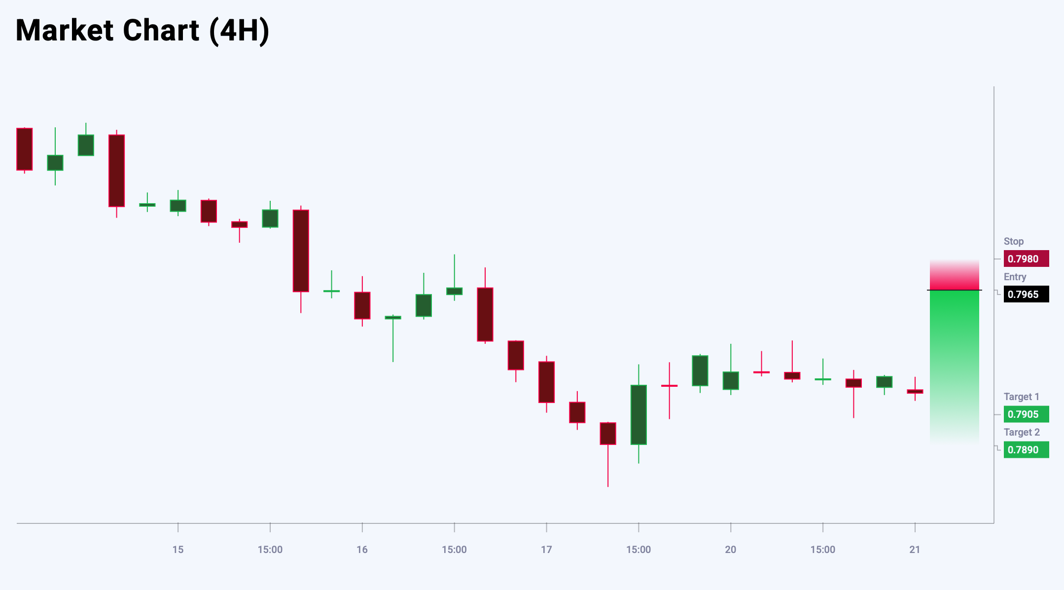 USDCHF juftligining asosiy trendi bearishligicha qolmoqda. Korreksiya to‘lqinida qisqa muddatli narx o‘sishi kutilmoqda. Afzal strategiya — narx qaytishida sotish. Muhim resistance darajasi 0.7965 da joylashgan. Bugungi USDCHF savdo g‘oyasi Sell Limit kutilayotgan buyurtmasini qo‘yishni tavsiya qiladi.