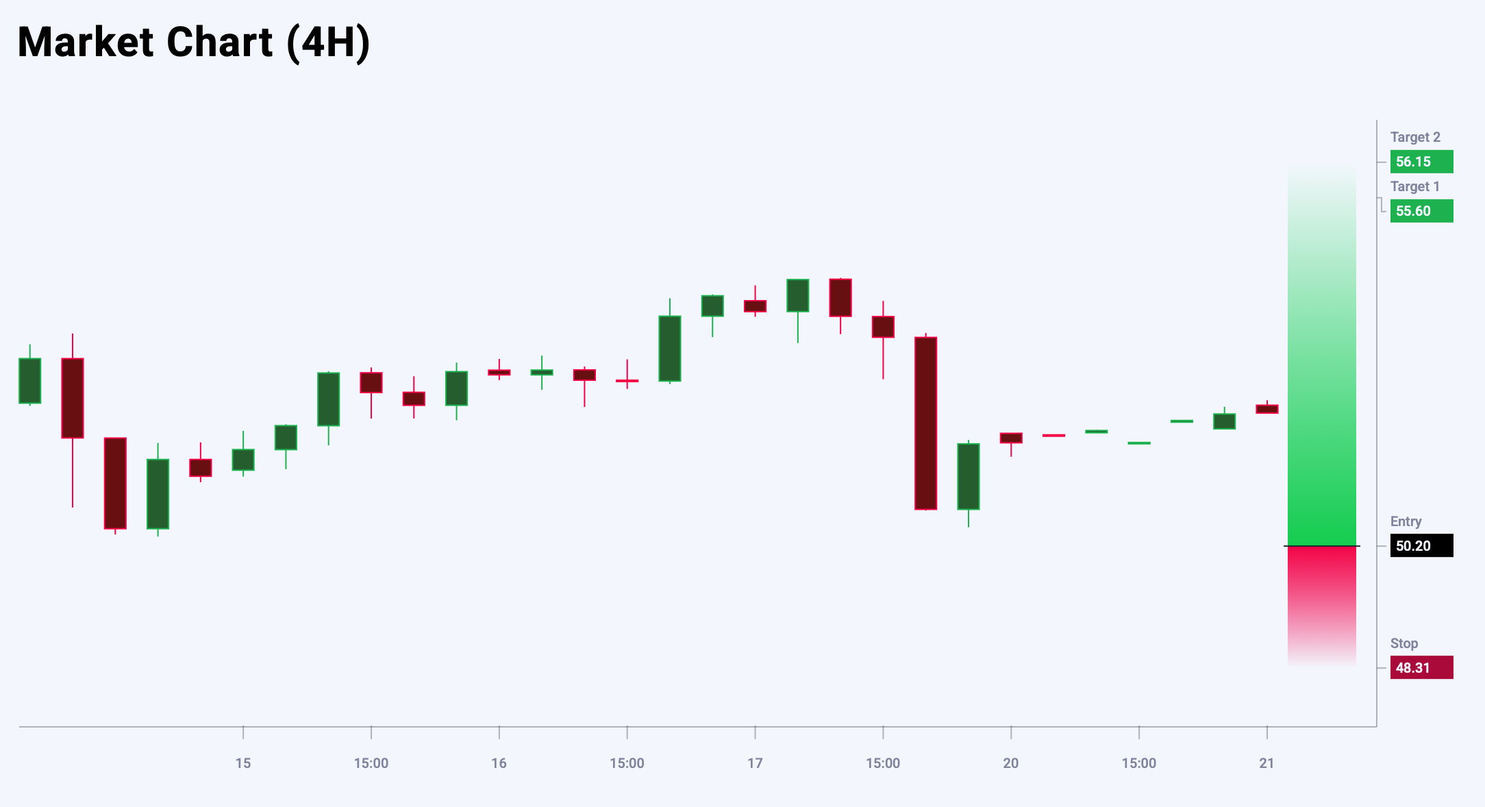 XAGUSD bo‘yicha xaridorlar ustunlikni saqlab qolishmoqda, biroq o‘sish impulsining sekinlashuvi orqaga qaytish ehtimolini bildiradi. O‘rtacha bearish korreksiya kutilmoqda, ammo pasayishlar cheklangan bo‘lishi mumkin. Tavsiya etilgan strategiya — qisqa Stop bilan orqaga qaytishlarda xarid qilish, keyingi o‘sish davom etishini kutish. Muhim support darajasi 50.20 da joylashgan. Bugungi XAGUSD savdo g‘oyasi Buy Limit kutilayotgan buyurtmasini qo‘yishni tavsiya qiladi.