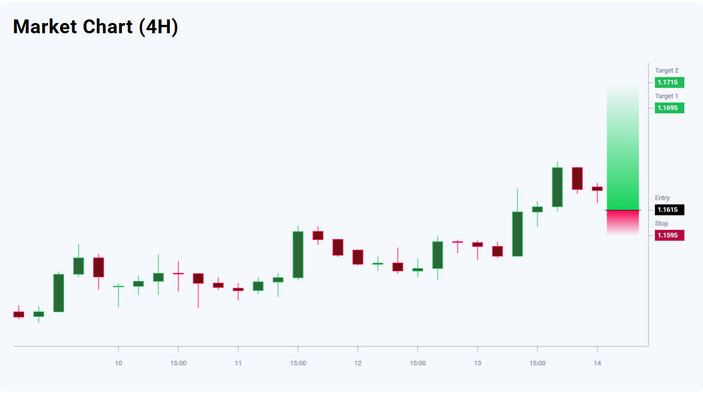 EURUSD juftligida asosiy trend hali ham o‘suvchi (bullish), biroq qisqa muddatli RSI indikatori pastga harakatlanib, tuzatish ehtimolini ko‘rsatmoqda. Afzal strategiya — orqaga chekinishlarda sotib olish, chunki joriy bozor darajalarida kirish xavf/foyda nisbati bo‘yicha qulay emas. Asosiy qo‘llab-quvvatlash darajasi 1.1615 da shakllangan. Bugungi EURUSD savdo g‘oyasi kutilayotgan Buy Limit buyurtmasini joylashtirishni tavsiya qiladi.
