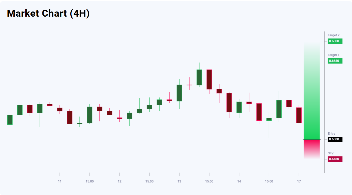 AUDUSD juftligi uchun o‘rta muddatli istiqbol o‘suvchi (bullish) bo‘lib qolmoqda, biroq qisqa muddatli pasayish tuzatishi kutilmoqda. Shu sababli, afzal strategiya — orqaga chekinishdan keyin tor stop-loss bilan sotib olish va o‘sish impulsining davom etishini kutishdir. Asosiy qo‘llab-quvvatlash darajasi 0.6500 da joylashgan. Bugungi AUDUSD savdo g‘oyasi kutilayotgan Buy Limit buyurtmasini joylashtirishni tavsiya qiladi.