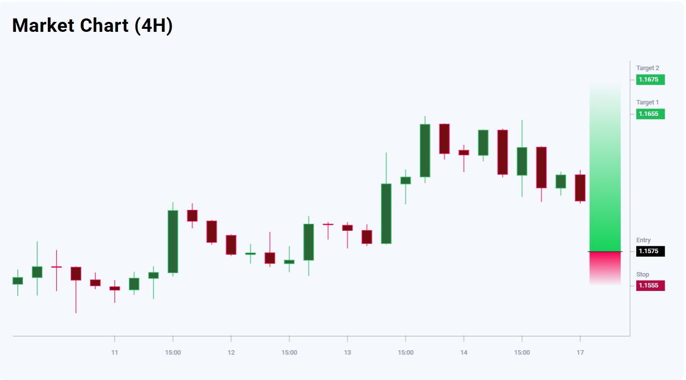 EURUSD juftligida asosiy trend hali ham o‘suvchi (bullish). Qisqa muddatli RSI indikatori pastga yo‘nalib, ehtimoliy tuzatish bosqichini ko‘rsatmoqda. Afzal strategiya — orqaga chekinishlarda sotib olish, chunki joriy bozor narxlarida kirish xavf/foyda nisbati bo‘yicha qulay emas. Asosiy qo‘llab-quvvatlash darajasi 1.1575 da shakllangan. Bugungi EURUSD savdo g‘oyasi kutilayotgan Buy Limit buyurtmasini joylashtirishni tavsiya qiladi.