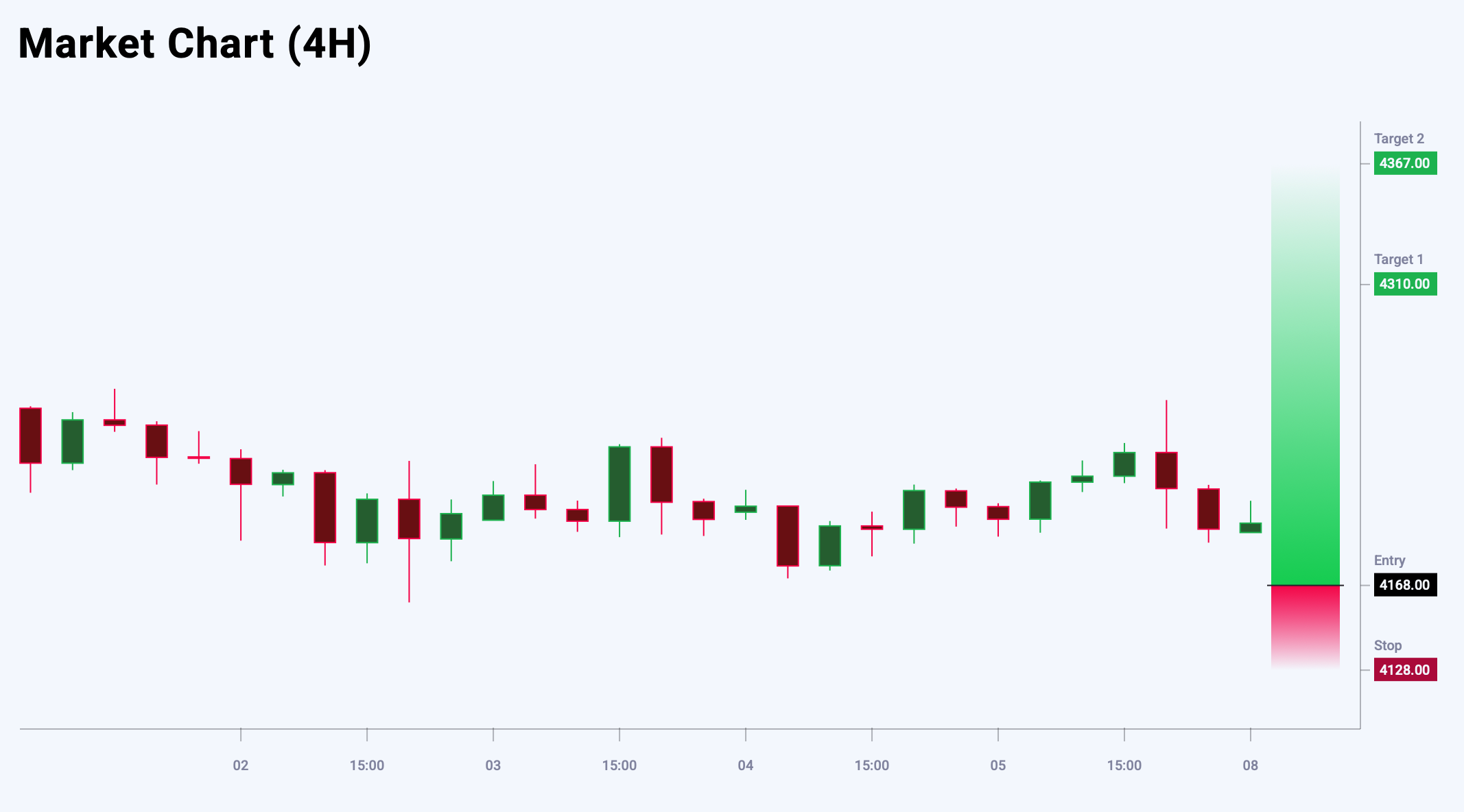 XAUUSD narx dinamikasi besh kundan beri aralash va o‘zgaruvchan bo‘lib qolmoqda, bu esa ikki yo‘nalishda keskin tebranishlarga sabab bo‘lmoqda. RSI indikatori 50 atrofida bo‘lib, aniq trendning yo‘qligini ko‘rsatmoqda. Oltin o‘suvchi kanal ichida savdo qilmoqda va umumiy kayfiyat o‘sish tomonida qolmoqda. Optimal strategiya — qaytishlarda sotib olish, asosiy qo‘llab-quvvatlash darajasi esa 4,168 da joylashgan. Bugungi XAUUSD savdo g‘oyasi Buy Limit orderini o‘rnatishni tavsiya qiladi.