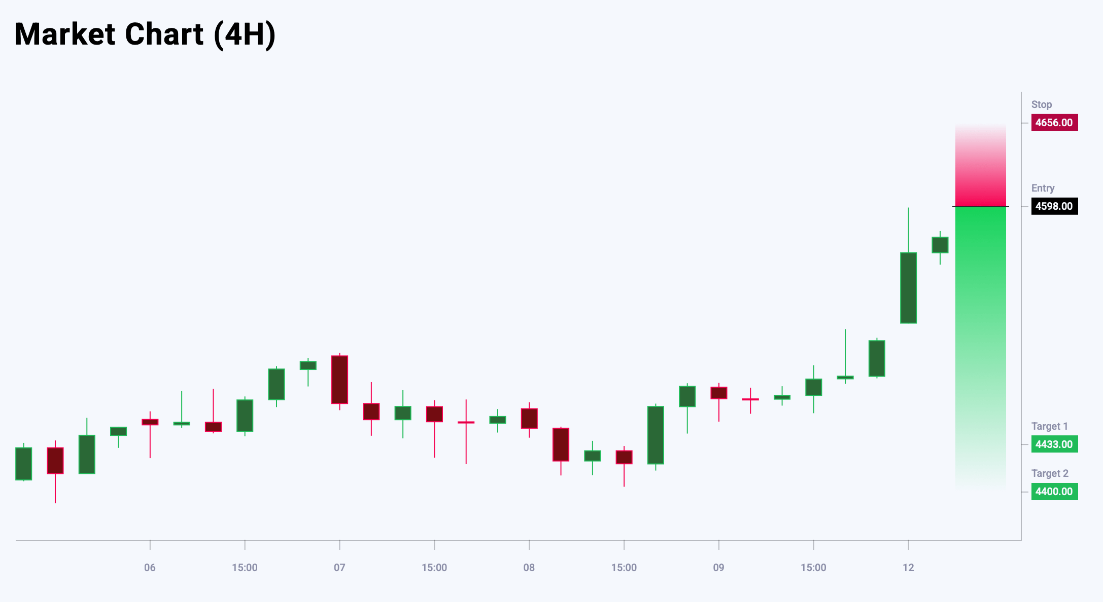 XAUUSD bo‘yicha 4,407 USD darajasidan boshlangan o‘sish ijobiy kunlik yopilishga olib keldi. Osiyo sessiyasi davomida faol xaridlar yangi tarixiy maksimum — 4,602 USD darajasiga erishilishiga sabab bo‘ldi. Joriy sharoitda afzal strategiya hanuz narx ko‘tarilganda sotish bo‘lib qolmoqda, keyingi pasayishni kutgan holda. Bugungi XAUUSD savdo g‘oyasi pending Sell Limit orderini joylashtirishni nazarda tutadi.