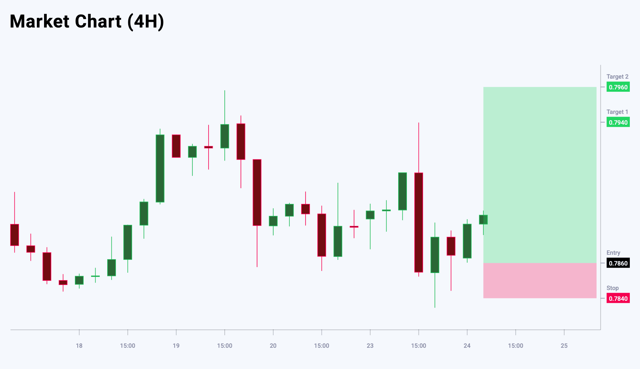 USDCHF valyuta juftligi o‘rta muddatli bullish yo‘nalishni saqlab qolmoqda. Joriy bozor tuzilmasi uptrend davom etayotganini ko‘rsatadi, shu bilan birga mumkin bo‘lgan pullbacklar oldingi kun minimumi bilan cheklanishi ehtimoli yuqori. Xaridorlar ustunligiga qaramay, joriy darajalarda long pozitsiyalar ochish uchun risk/foyda nisbati unchalik jozibador emas. Asosiy strategiya — pullbacklarda long pozitsiyalar ochish. Muhim qo‘llab-quvvatlash darajasi 0.7860 da joylashgan bo‘lib, bu yerda xaridorlar talabi kuchayishi va bullish impuls qayta tiklanishi mumkin. Bugungi USDCHF savdo g‘oyasi pending Buy Limit orderini joylashtirishni nazarda tutadi.