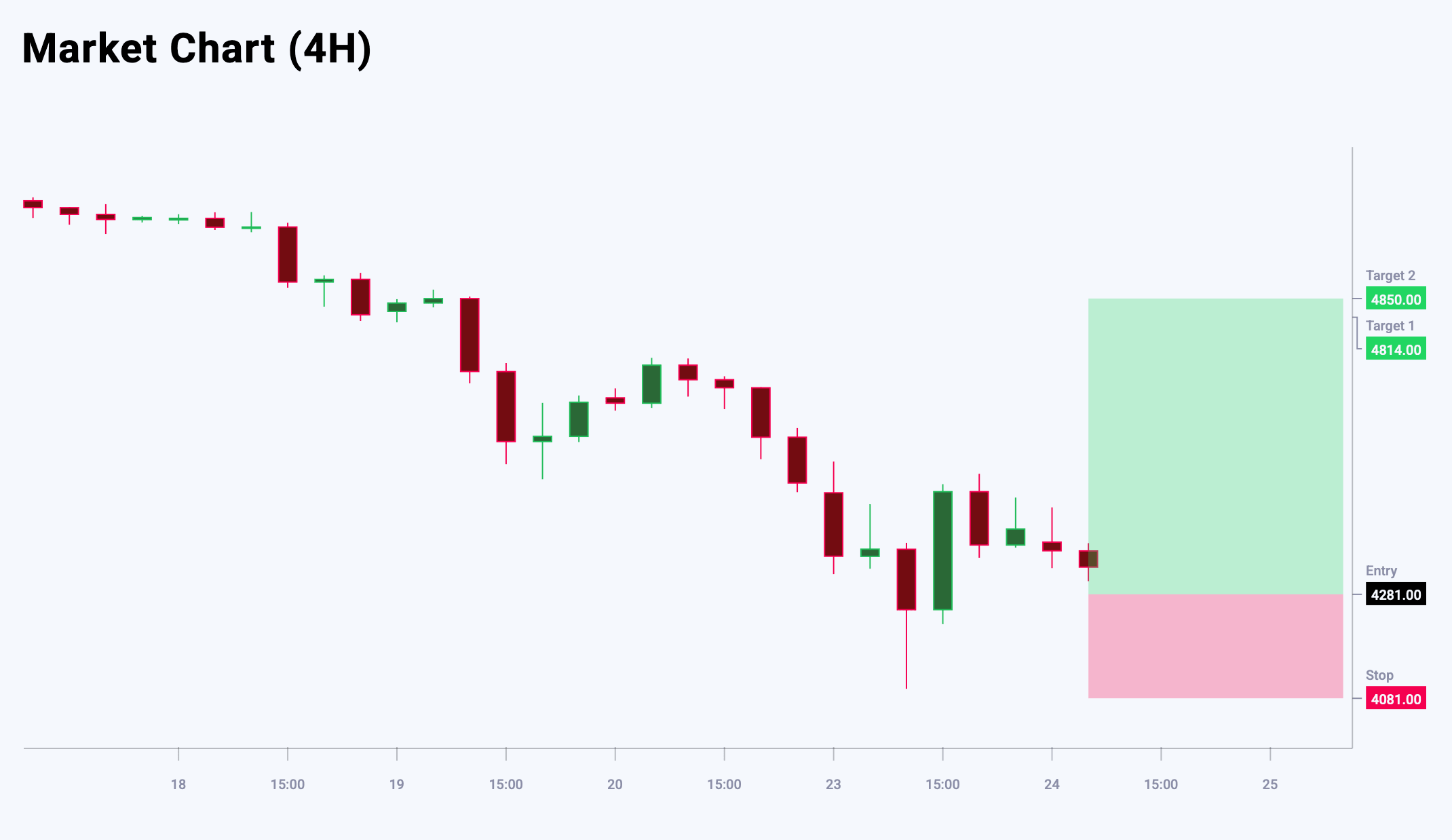 XAUUSD kotirovkalari qisqa muddatli kayfiyatning yaxshilanganini ko‘rsatmoqda, chunki kun boshidagi yo‘qotishlarning katta qismi qoplandi. Tunda kuzatilgan pasayish tezda sotib olindi, bu esa xaridorlarning barqaror qiziqishini va ertalabki sessiyada yuqoriga bosimning davom etishi uchun shart-sharoit yaratdi. Intraday narx harakati 3,892–4,813 USD oralig‘idagi qo‘llab-quvvatlash va qarshilik diapazonida rivojlanmoqda. Qo‘llab-quvvatlash darajasidan yuqorida qolish qisqa muddatda yuqoriga harakat ehtimolini ko‘rsatadi. Asosiy strategiya — ko‘rsatilgan diapazonda pullbacklarda long pozitsiyalarni izlash. Kutilayotgan o‘sish korreksion bo‘lsa-da, u jozibador risk/foyda nisbatini taqdim etishi mumkin. Bugungi XAUUSD savdo g‘oyasi pending Buy Limit orderini joylashtirishni nazarda tutadi.