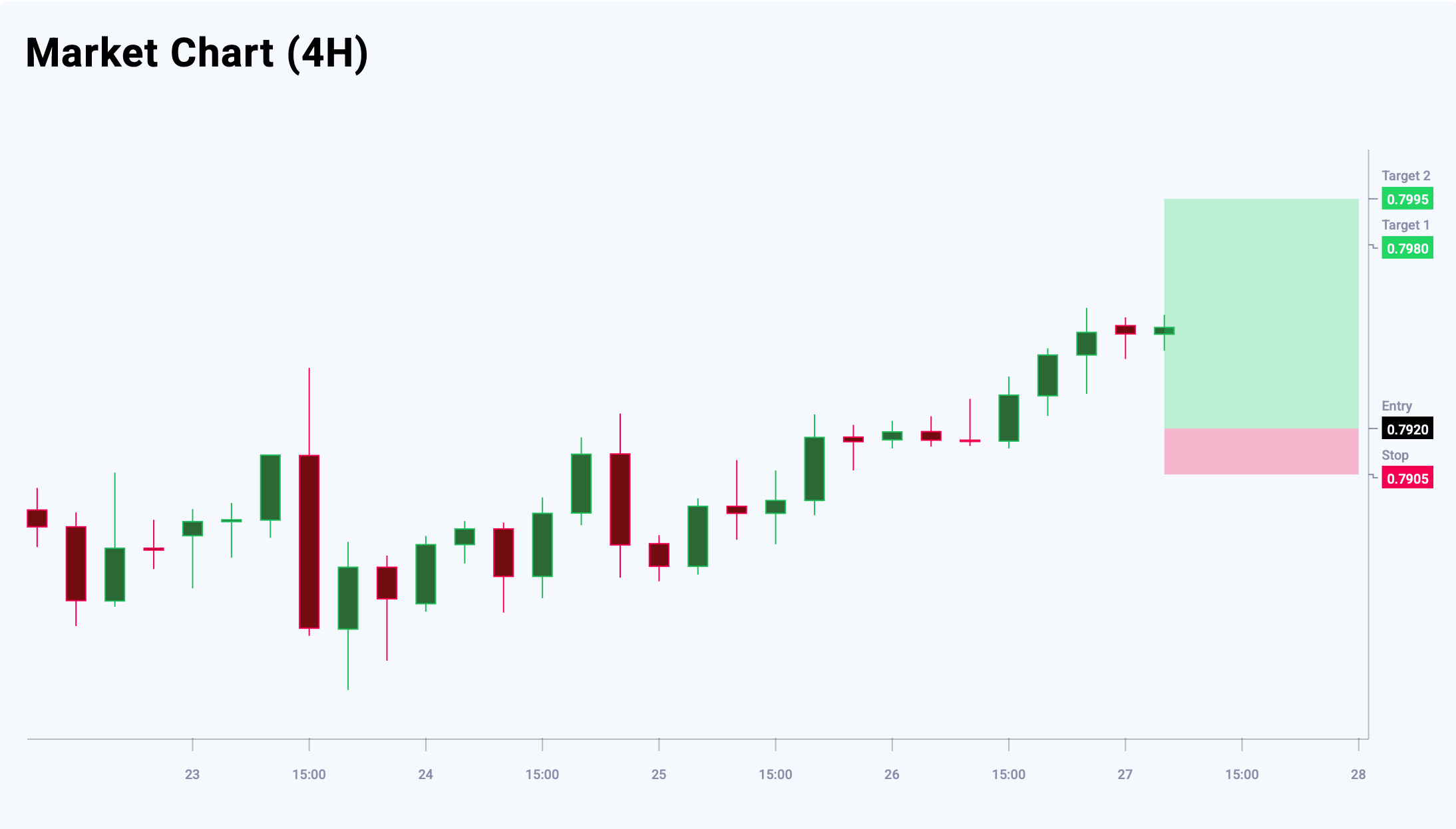 USDCHF valyuta juftligi o‘rta muddatda bullish yo‘nalishni saqlab qolmoqda. Korreksion pasayishlar kechagi minimum bilan cheklanishi va umumiy o‘sish strukturasi buzilmasligi kutilmoqda. Shu bilan birga, joriy darajalarda long pozitsiyalar ochish uchun risk/foyda nisbati noqulay, shuning uchun hozir xarid qilish tavsiya etilmaydi. Asosiy qo‘llab-quvvatlash darajasi 0.7920 da joylashgan. Strategiya — aynan shu daraja yaqinida pasayishlarda xarid qilish. Bugungi USDCHF savdo g‘oyasi pending Buy Limit orderini joylashtirishni nazarda tutadi.