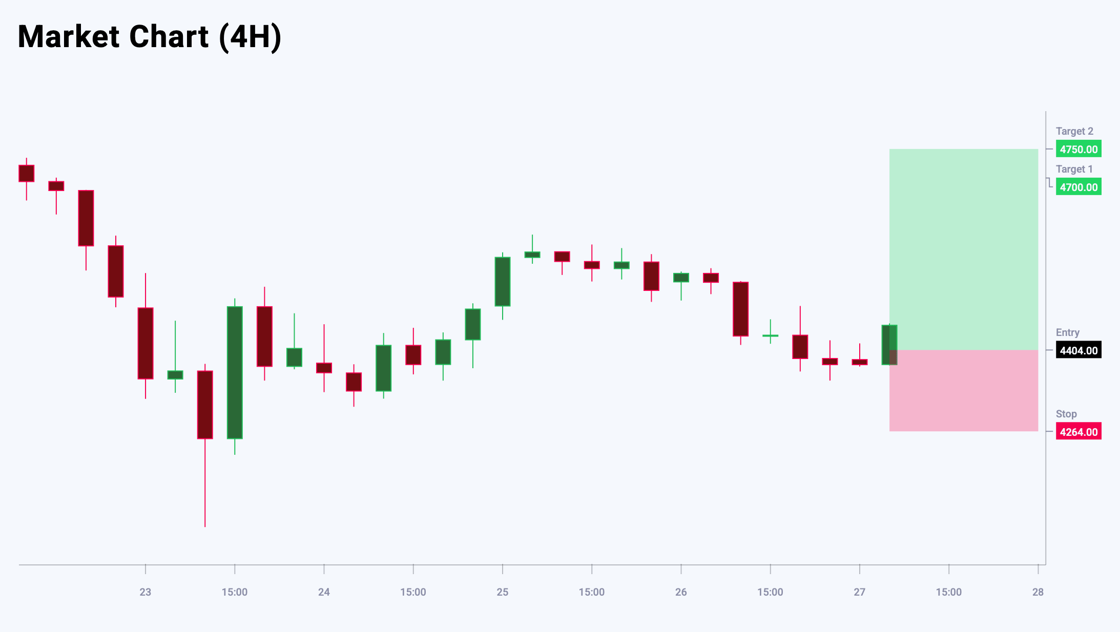 XAUUSD so‘nggi to‘rt savdo sessiyasida aralash natijalarni ko‘rsatdi. Narxning yuqoriga harakatlari oshgan volatilitet bilan kuzatildi, bu esa korreksion to‘lqinlar uchun xosdir. Muhim qarshilik darajasi 4,700 USD da, qo‘llab-quvvatlash esa 4,404 USD da joylashgan. Kutilayotgan o‘sish korreksion bo‘lishiga qaramay, joriy risk/foyda nisbati long pozitsiyalar ochish uchun qulay ko‘rinadi. Bugungi XAUUSD savdo g‘oyasi pending Buy Limit orderini joylashtirishni nazarda tutadi.