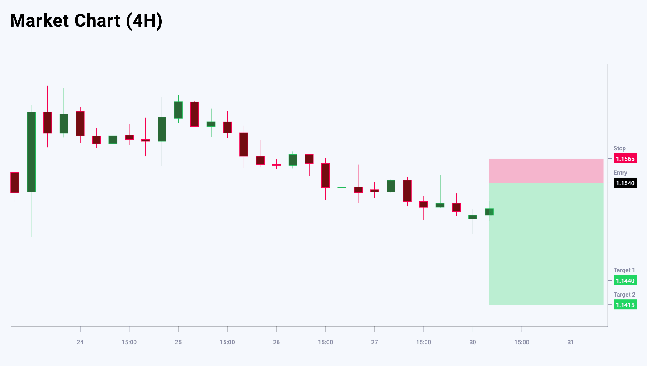 EURUSD juftligi pasayuvchi trendni saqlab qolmoqda. Joriy narx harakati ehtimoliy cho‘qqi shakllanayotganini ko‘rsatmoqda, bu esa sotuv bosimining kuchayishini bildirishi mumkin. Shu bilan birga, joriy darajalarda short pozitsiyalar ochish uchun risk/foyda nisbati hali ham noqulay. Afzal strategiya — o‘sishlarda sotish. Asosiy qarshilik darajasi 1.1540 da joylashgan bo‘lib, shu yerda bearish bosim kuchayishi va pasayish trendi qayta tiklanishi kutilmoqda. Bugungi EURUSD savdo g‘oyasi pending Sell Limit orderini joylashtirishni nazarda tutadi.