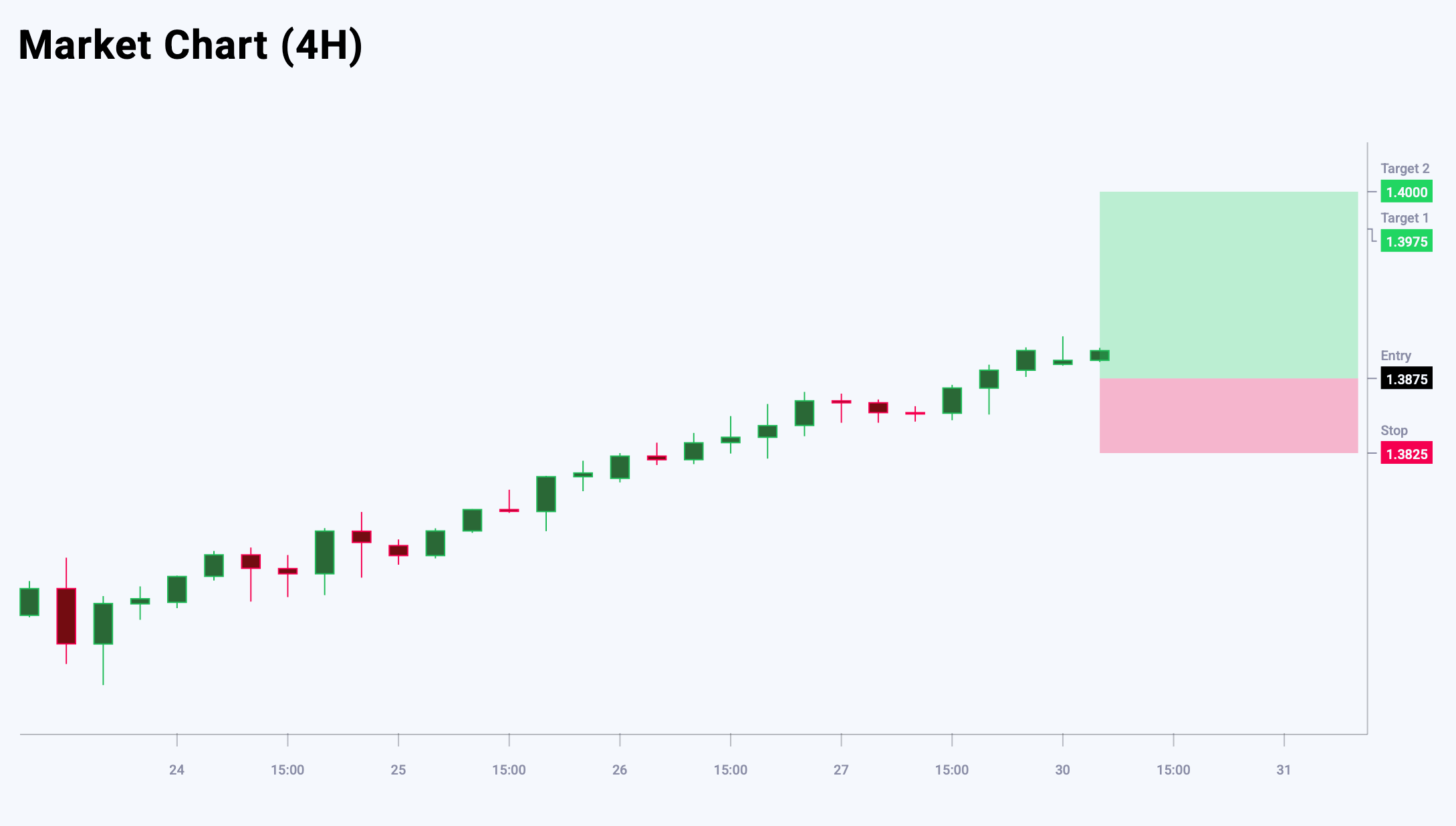 USDCAD juftligida o‘sish harakati yakunlanganini ko‘rsatadigan aniq belgilar yo‘q. Umumiy manzara bullish bo‘lib qolmoqda, shu bilan birga bozor asosiy trendni buzmasdan korreksion pasayish uchun hali imkoniyatga ega. Joriy darajalarda long pozitsiyalar ochish uchun risk/foyda nisbati unchalik jozibador emas, shuning uchun kirish uchun yanada qulay darajalar talab etiladi. 1.3900 qarshilik darajasidan yuqoriga chiqish bullish impuls davom etishini tasdiqlaydi va xarid bosimini oshirib, 1.4000 darajagacha o‘sish uchun yo‘l ochadi. Bugungi USDCAD savdo g‘oyasi pending Buy Limit orderini joylashtirishni nazarda tutadi.