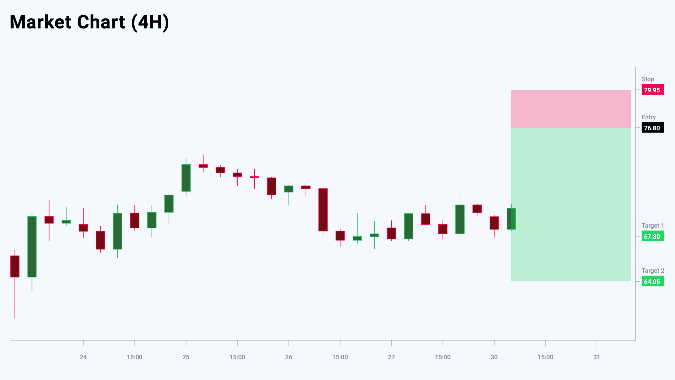 XAGUSD bo‘yicha narx harakati lokal pastki daraja shakllanayotganini ko‘rsatmoqda. Qo‘llab-quvvatlash darajasi yaqinida yuzaga kelgan reversal sham modeli bozor noaniqligini va nazorat xaridorlarga o‘tishi mumkinligini bildiradi. Yaqin muddatda korreksion o‘sish kutilmoqda. Korreksion pasayishlar cheklangan bo‘lishi mumkin va ular xaridni davom ettirish uchun imkoniyat sifatida ko‘riladi. Asosiy qarshilik darajasi 76.80 da joylashgan bo‘lib, shu yerda sotuv bosimi kuchayishi va o‘sish sur’ati sekinlashishi mumkin. Bugungi XAGUSD savdo g‘oyasi pending Sell Limit orderini joylashtirishni nazarda tutadi.
