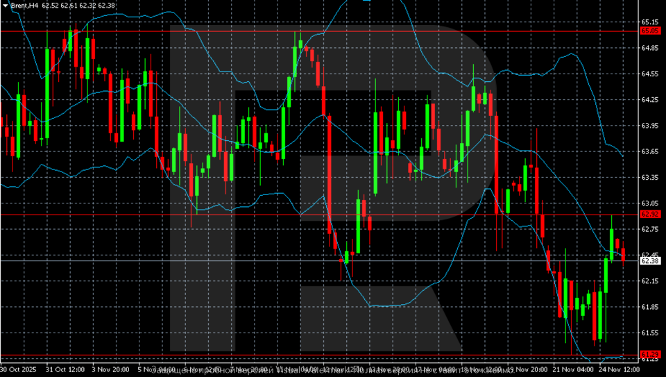 The outlook for Brent remains negative, with a retest of the lower support zone possible. The Brent forecast for today, 25 November 2025, suggests a slide towards 61.30.