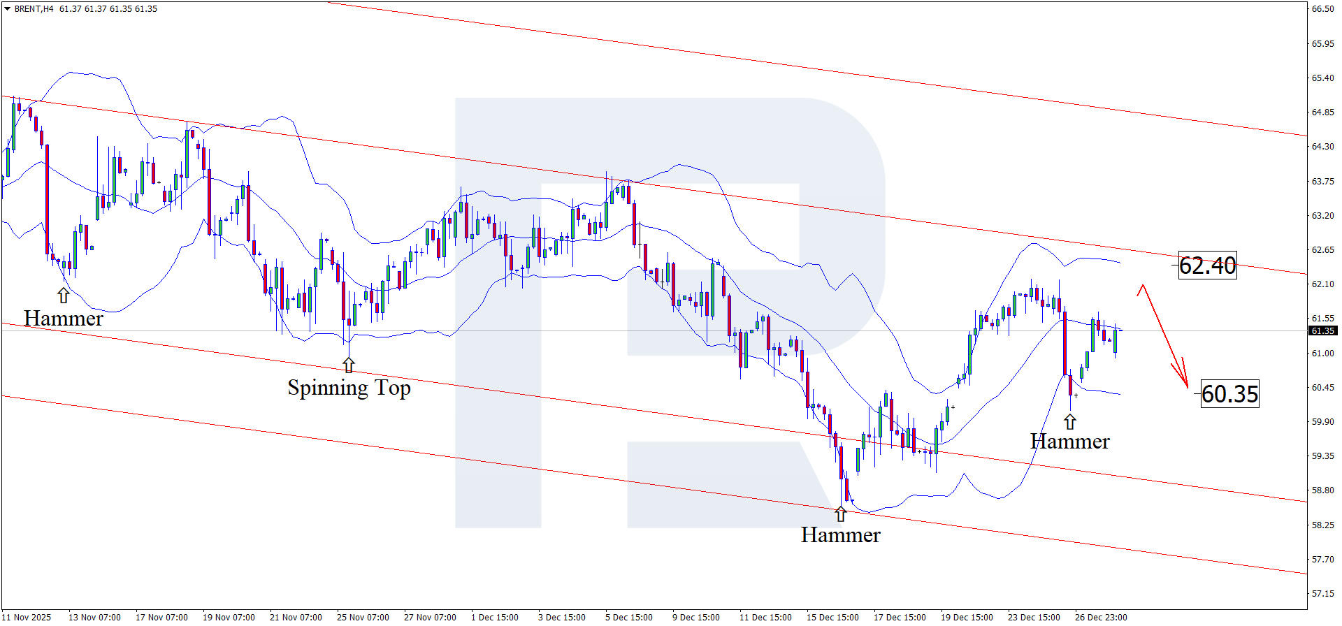 The fundamental outlook for Brent on 30 December 2025 suggests that prices are forming a corrective wave and are trading near 61.30 USD per barrel.