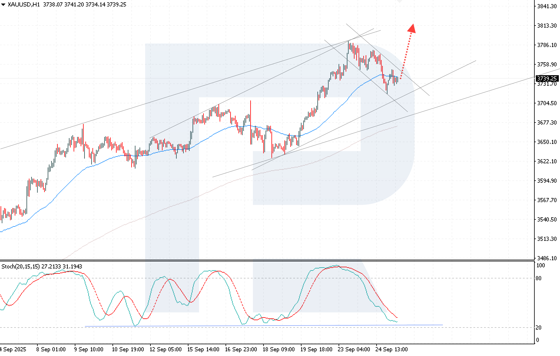XAUUSD prices remain stable amid expectations of further Fed policy easing and the upcoming release of key US inflation data. The rate currently stands at 3,739 USD. Discover more in our analysis for 25 September 2025.