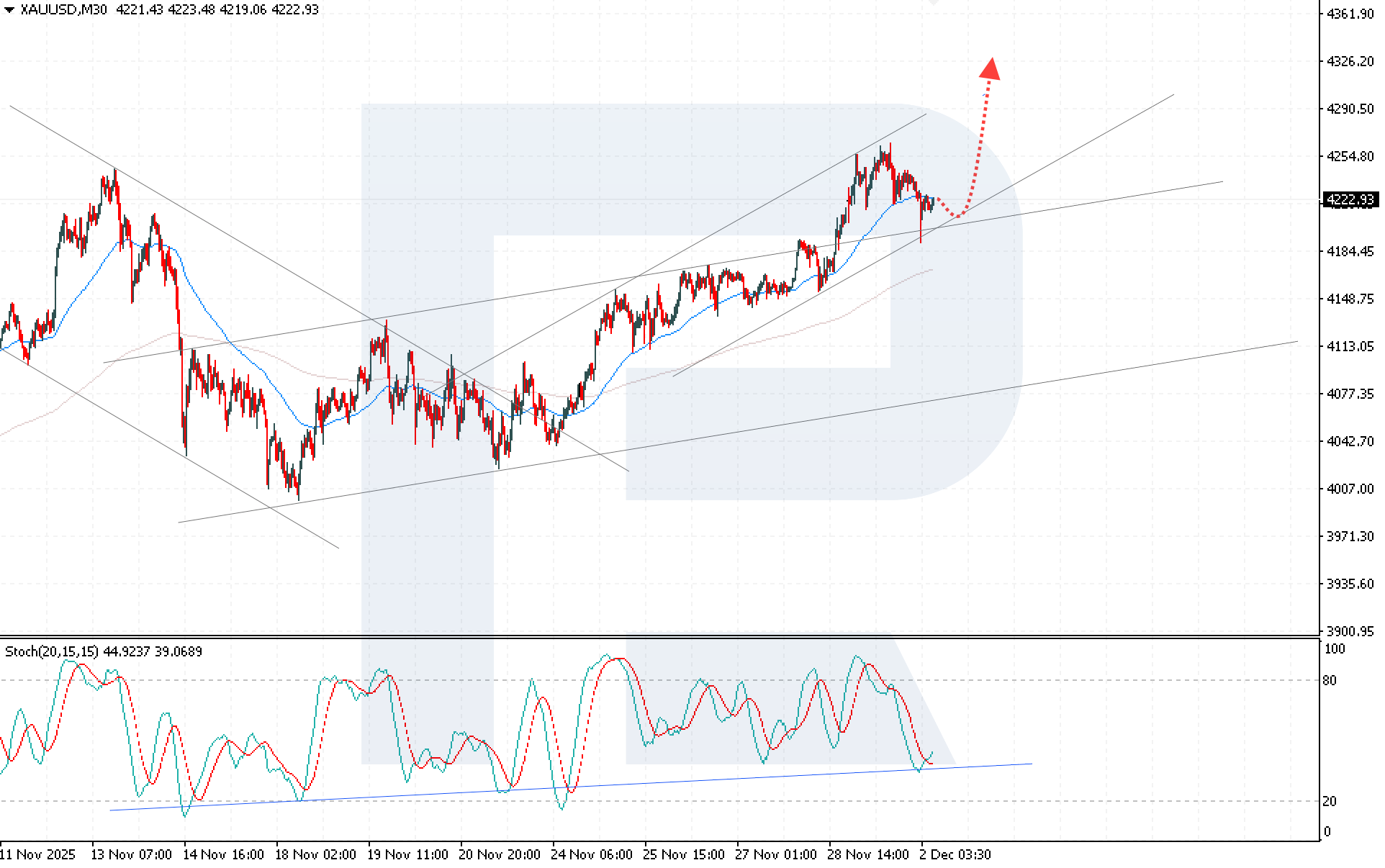 XAUUSD prices are under pressure; however, key macroeconomic and monetary factors continue to generate bullish signals, with quotes currently at 4,222 USD. Find more details in our analysis for 2 December 2025.