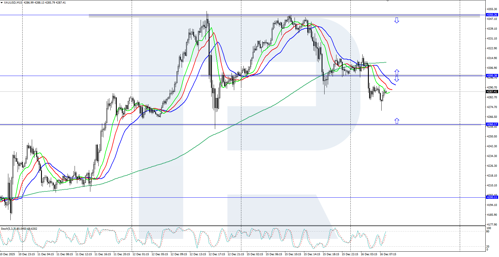 The price of XAUUSD declined to 4,270 USD during a downward correction amid profit-taking by investors ahead of US employment data. Details — in our analysis for 16 December 2025.