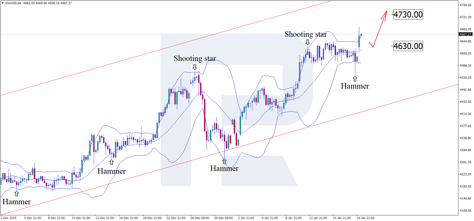 At the same time, XAUUSD technical analysis for today also considers an alternative scenario, where prices undergo a correction towards the 4,630 USD level before resuming growth.