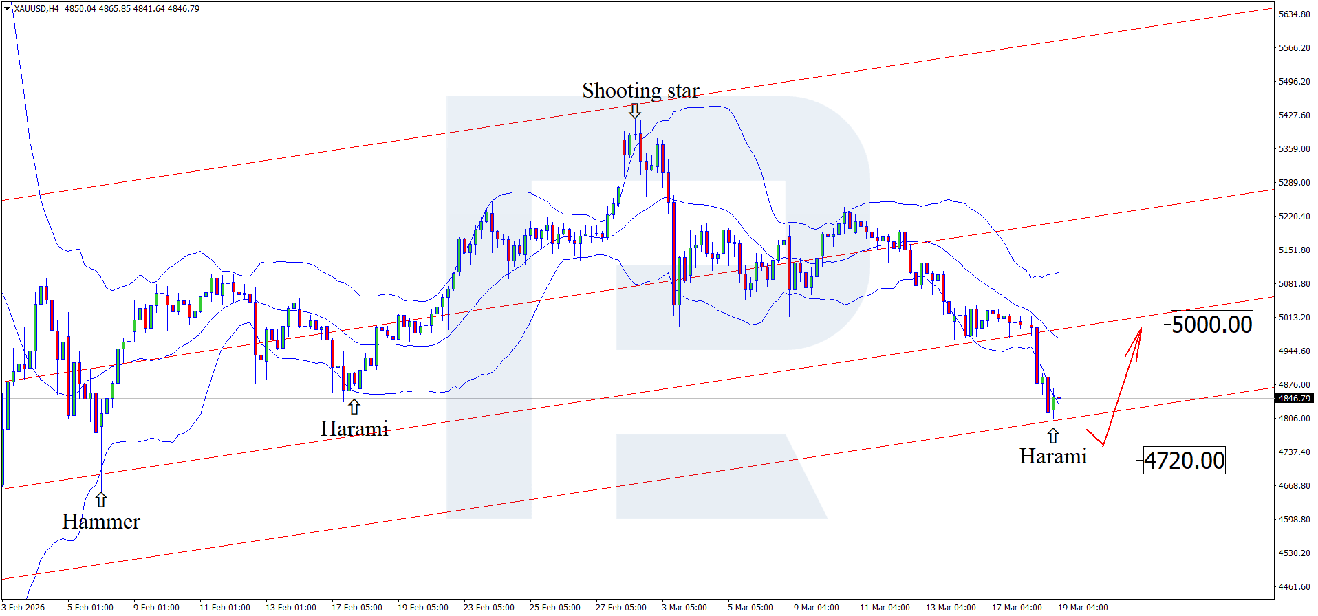 XAUUSD prices continue to decline despite negative forecasts for US macroeconomic data, testing the 4,840 USD level. Discover more in our analysis for 19 March 2026.