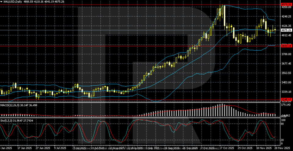 This review highlights the key factors that could influence gold’s dynamics during 24–28 November 2025. The focus will be on the release of delayed US labour market data, the Fed’s response to the risks of an economic slowdown, and the technical market structure after XAUUSD entered the 4,050–4,150 range.
