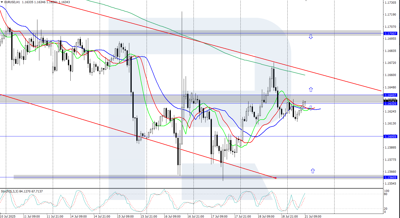 The EURUSD rate has fallen to the 1.1600 area as part of a downward correction and in anticipation of new tariffs on EU goods. Find out more in our analysis for 21 July 2025.
