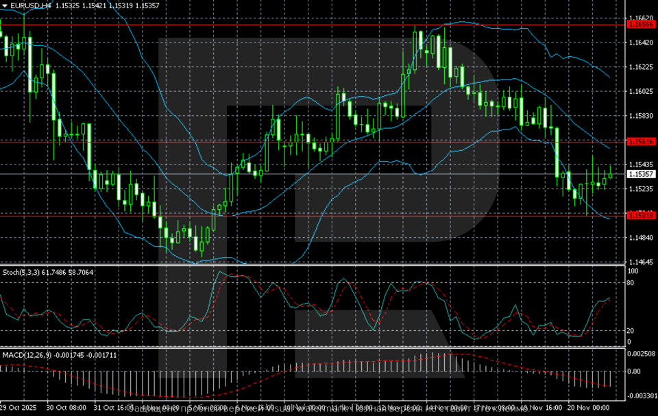 The EURUSD pair stalled at 1.1535, with the market no longer expecting the Fed to cut rates in December. Discover more in our analysis for 21 November 2025.