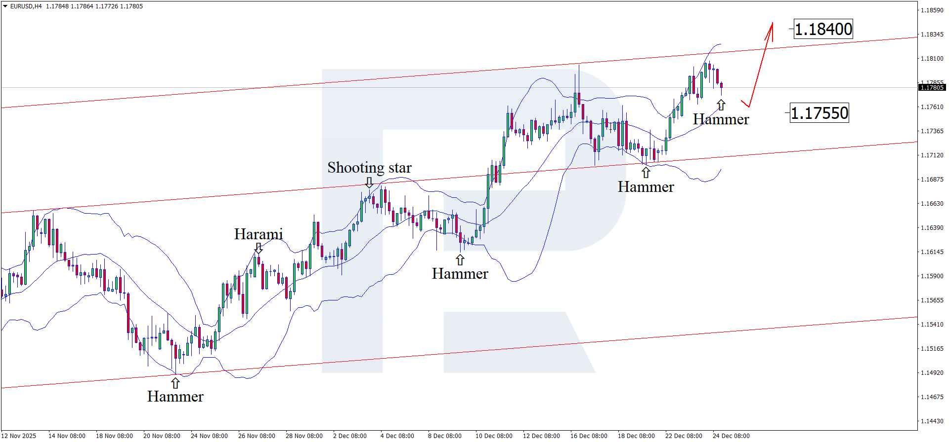 After forming a corrective move, the EURUSD pair has stalled near the 1.1780 level. On Monday, the market is expected to see increased volatility. Details — in our analysis for 26 December 2025.